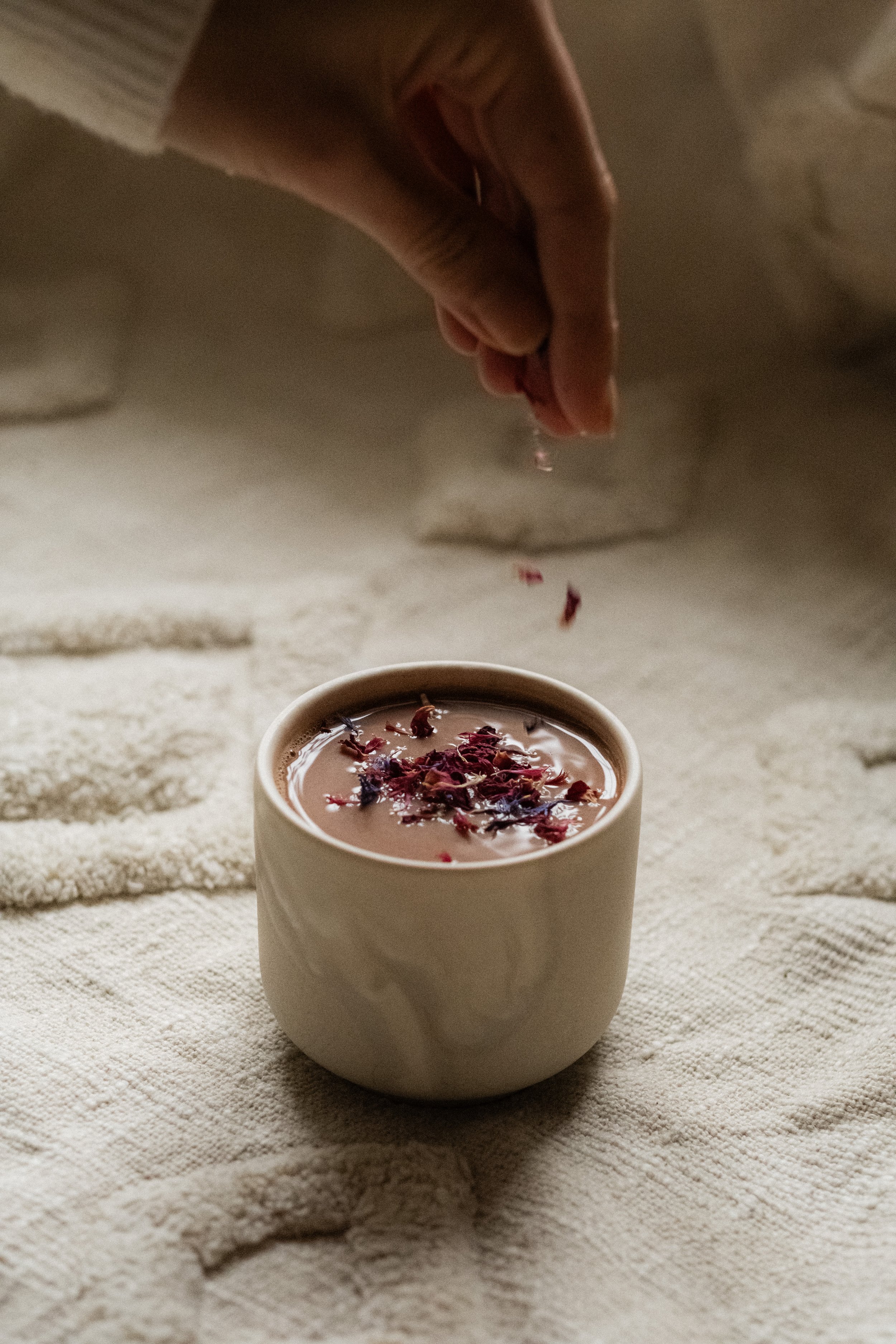 Grounding arrival with floral tea